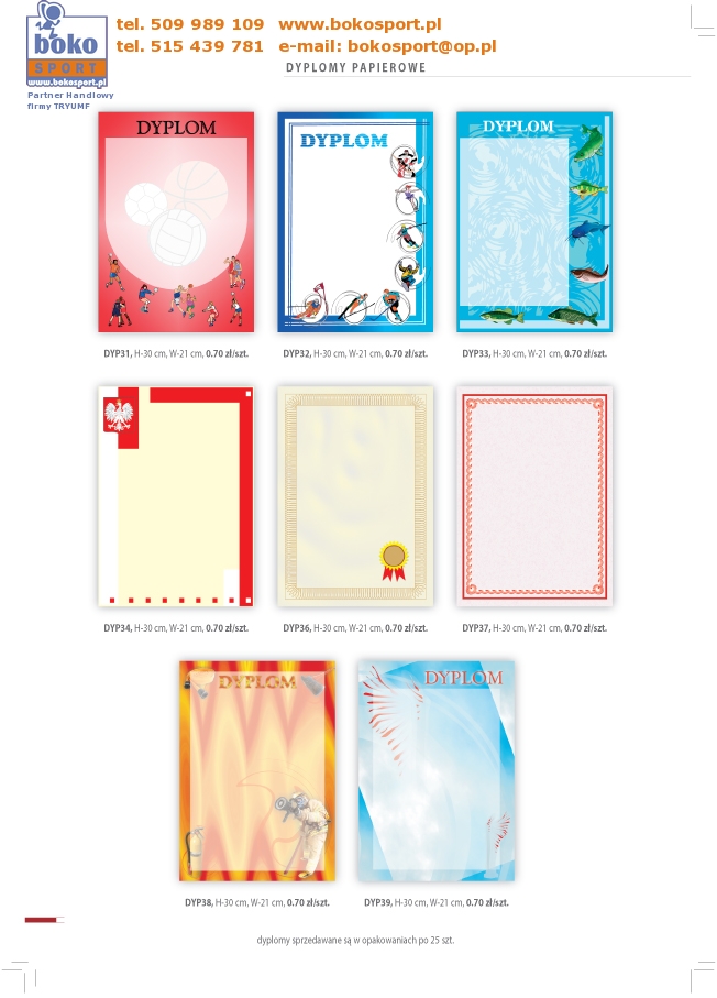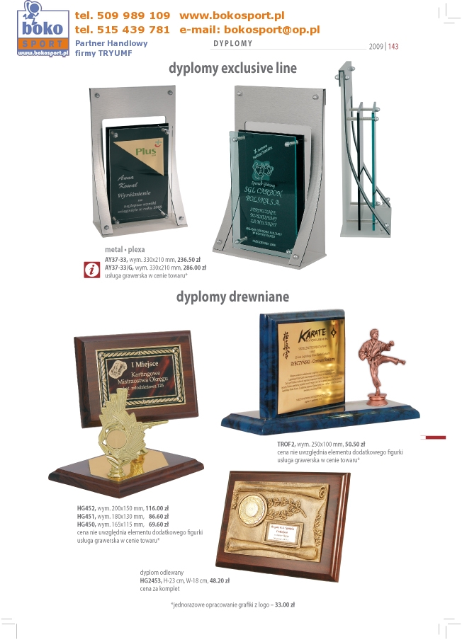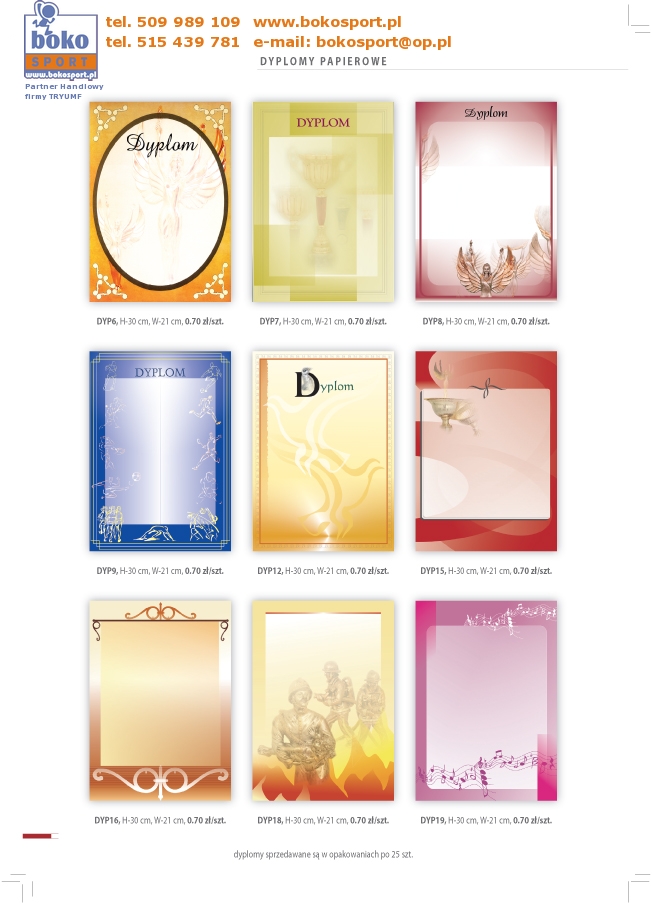 | Strona Główna | Dyplomy | Medale | Wyprzedaż | Puchary | Statuetki | Trofea | Inne | Zamówienia | |||||