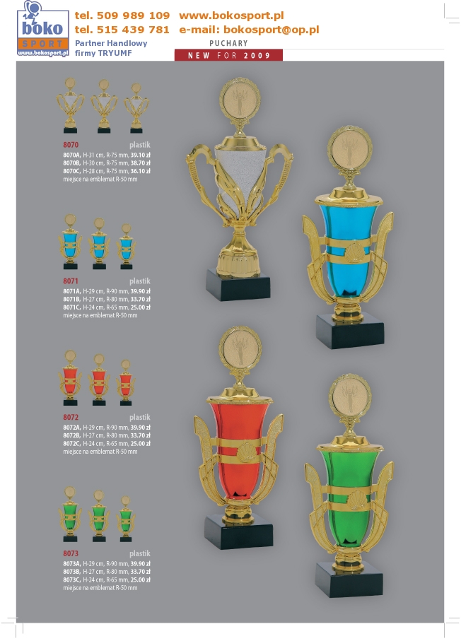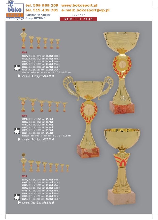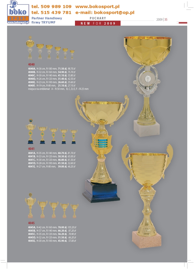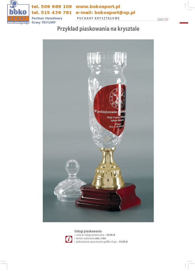 | Strona Główna | Dyplomy | Medale | Wyprzedaż | Puchary | Statuetki | Trofea | Inne | Zamówienia | |||||