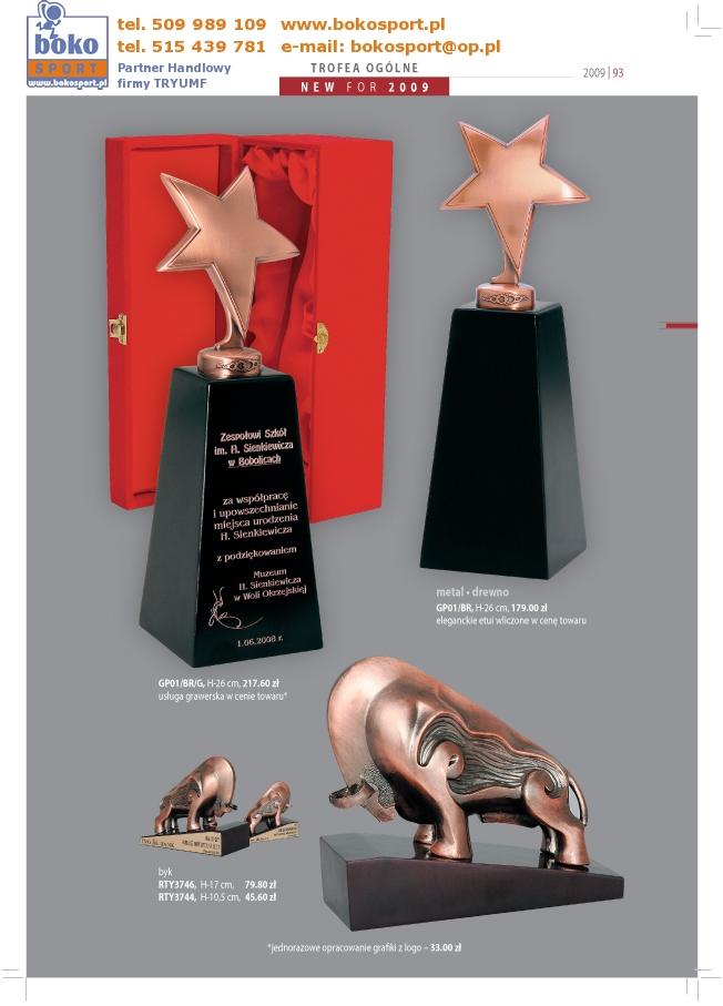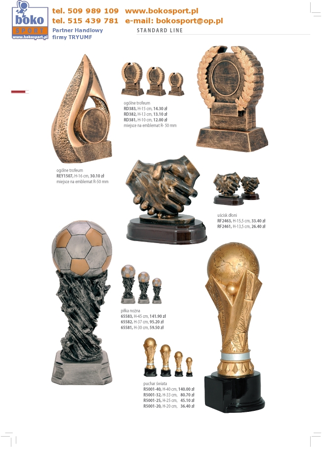 | Strona Główna | Dyplomy | Medale | Wyprzedaż | Puchary | Statuetki | Trofea | Inne | Zamówienia | |||||