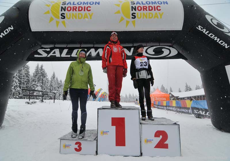 Zima do nas wróciła i trzeci bieg narciarski z cyklu Salomon Nordic Sunday ponownie odbył się na polanie Jakuszyckiej. I jak na Polaków przystało, patriotyzm dopisał: na starcie stawili się reprezentanci niemal wszystkich miast, od Szczecina, Bydgoszczy i Warszawy po Jelenią Górę i Kraków oraz Szklarską Porębę. Tak jak w ubiegłym roku do rywalizacji przystąpili członkowie kadry z Polskiego Związku Towarzystw Wioślarskich (min. Mariusz Stańczuk, Agata Gramatyka, Marek Kolbowicz) a także zapaleni biegacze ze szczecińskiego Jacht Klubu. Cieszy nas niezmiernie, że sportowcy innych dyscyplin zimą trenują i bawią się z nami.