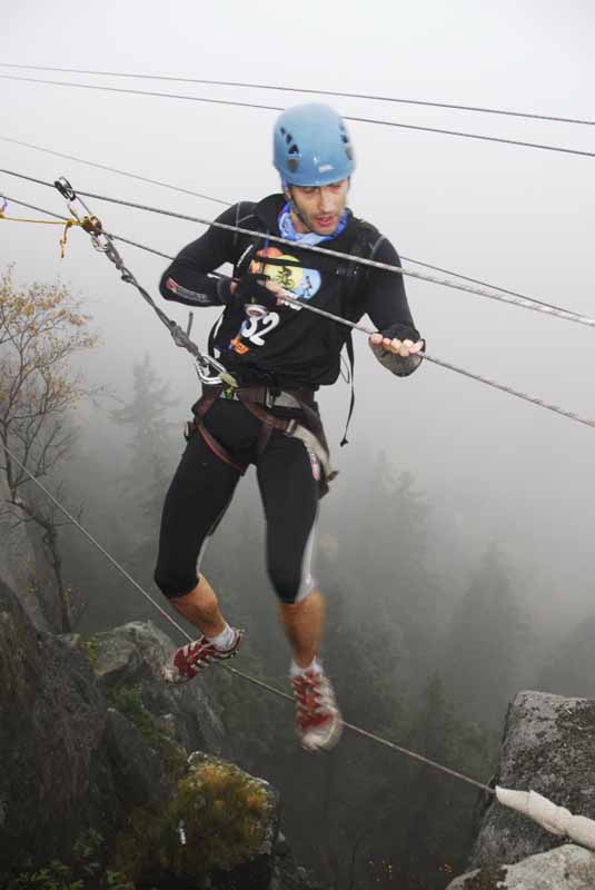 Wia³o, pada³o, by³o zimno i bardzo mglisto, a mimo to (a mo¿e w³aœnie dlatego) œciganie w Górach Sto³owych przebieg³o znakomicie. Ró¿nice na mecie by³y minimalne, czasy lepsze ni¿ przewidzieli organizatorzy, a na imprezie po zawodach mogliœmy spotkaæ wielu debiutantów. Trasê u³o¿y³ Piotrek Hercog. Z za³o¿enia nawigacyjnie mia³a byæ ³atwa i tak¹ zawodnicy pokonali. Na pierwszy ogieñ poszed³ 8km bieg i ju¿ po kilkuset metrach prowadzenie objêli Czesi – Vena Hornych i Franta Zilak. I to prowadzenie utrzymali a¿ do mety... Tu¿ za ich plecami na kolejnych etapach toczy³a siê zaciêta walka o pierwsze miejsce wœród zespo³ów z kobiet¹ w sk³adzie i dalsze miejsca w kategorii mêskiej. Ostatecznie po dwóch etapach MTB (30 i 14km), p³ywaniu (250 metrów), rolkach (12km) i fina³owym biegu (15km) miêdzy B³êdnymi Ska³ami i Szczeliñcem, ró¿nice czasowe pierwszych trzech zespo³ów nie przekracza³y godziny. Ale nie wszyscy zawody ukoñczyli – dwa zespo³y jeszcze przed zmrokiem zesz³y z trasy. Potem obiecali jednak, ¿e na drug¹ edycjê (wiosna/lato 2010) wiêcej potrenuj¹ i wtedy na pewno ju¿ ukoñcz¹. Na du¿e brawa zas³u¿y³ debiutuj¹cy zespó³ Rangers Adventure Team, który przez awarie rowerów straci³ ponad dwie godziny a na metê dotar³ wieczorem na 11 minut przed zamkniêciem trasy. Sporo emocji zawodnicy prze¿ywali na szczycie Szczeliñca, na którym znajdowa³o siê drugie po p³ywaniu zadanie specjalne. Most linowy rozpiêto nad dwiema ska³ami, i mimo prostej techniki przejœcia, wielu startuj¹cych zapamiêta³o schowan¹ czêœciowo we mgle czeluœæ pod nogami. Ale wszyscy, nawet ci którzy nigdy na linie nie stali, zadanie przeszli. Mamy nadziejê, ¿e zawody Multi Sport Challenge w przysz³ym roku zachêc¹ wielu do spróbowaniu si³ w tej nowej w Polsce konkurencji. Ró¿nica miêdzy zawodami typu multi sport a adventure race (rajdy przygodowe) polega na tym, ¿e w tych pierwszych nawigacja jest banalnie prosta, trasa nie przekracza kilku, kilkunastu godzin a priorytetem jest sam wyœcig, nie logistyka. Od triathlonu ró¿ni siê natomiast tym, ¿e mo¿e wystêpowaæ w niej wiêcej dyscyplin, rozgrywana jest zwykle w górach i lasach i nie ma wyznaczonej taœm¹ trasy. Wszystkich, którzy chc¹ dowiedzieæ siê czegoœ wiêcej zapraszamy na www.multisportchallenge.pl Dok³adn¹ datê zawodów w 2010 roku poznamy za 2-3 miesi¹ce. Wyniki najlepszych – kategoria Mix 1.
